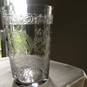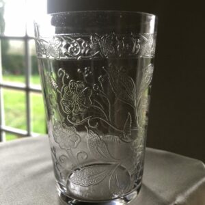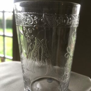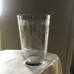 Beau gobelet en cristal chiffré A. Belle gravure à l’acide de fleurs et branchages.
