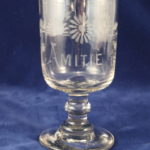 Verre sur pied gravé » Amitié » vers 1900 Référence: CV 025 Verre soufflé sur pied boule .Décor sablé « Amitié » dans une vignette entourée de marguerites, modèle peu courant . Début XXème. H : 13,6 cm Prix : 40 Euros Livraison gratuite en France. Autres destinations nous contacter.